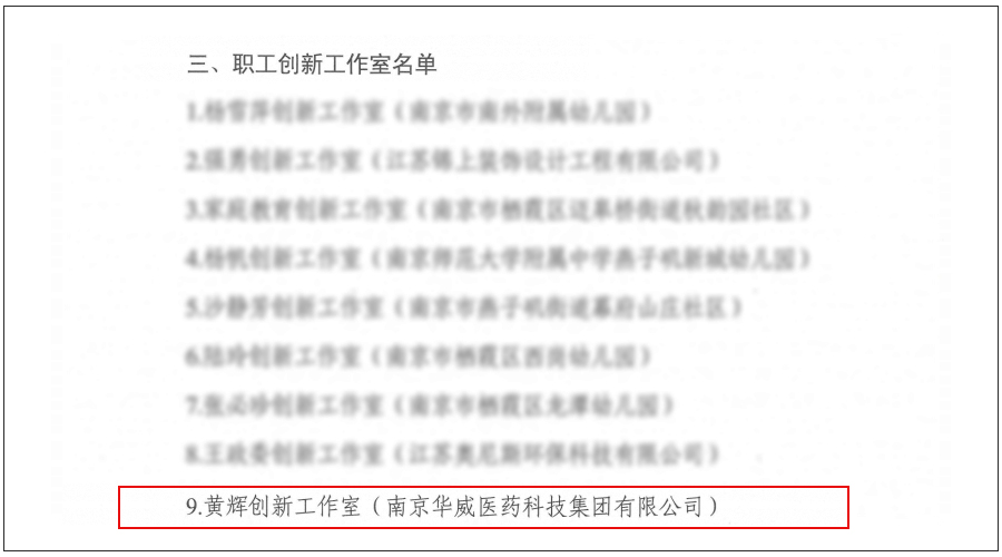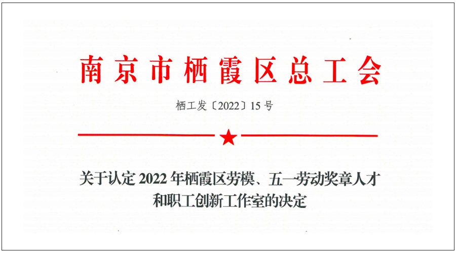 近日,為更好地落實《關于進一步深化創新工作室的意見》,經基層推薦及評比驗收,棲霞區總工會對44個工作室進行了2022年度棲霞區勞模、五一獎狀人才以及職工創新工作室的認定。南京華威醫藥科技集團有限公司“黃輝創新工作室”憑借雄厚實力以及豐碩成果成功入選棲霞區職工創新工作室。