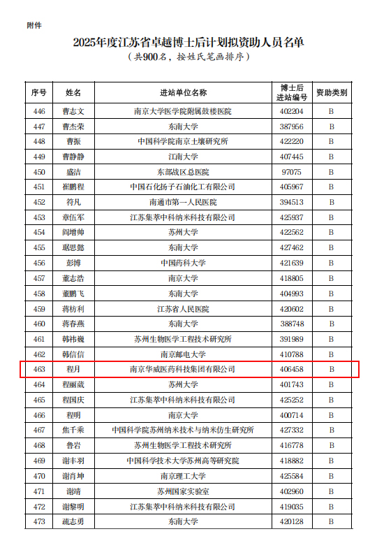 “卓博計劃”作為江蘇省“雙創計劃”的子項目,聚集重點領域重大平臺,旨在資助具有前沿科研視野和巨大發展潛力的優秀博士后青年人才,鼓勵他們潛心科研、勇攀高峰,成為推動江蘇省高質量發展的生力軍。2025年專項資助900名優秀博士后,分為A、B、C三檔,資助期兩年。